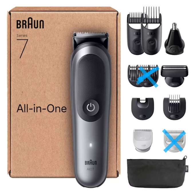 ![]() | Braun All-in-One Series 7, 12 w 1 zestaw groomingów, ProBlade, trymer do włosów w nosie, AutoSense, golarka męska, golarka elektryczna, trymer do brody i maszynka do włosów, akumulator 120 min, | 199 zł | B0DQWLG36G | 7500435245067 |